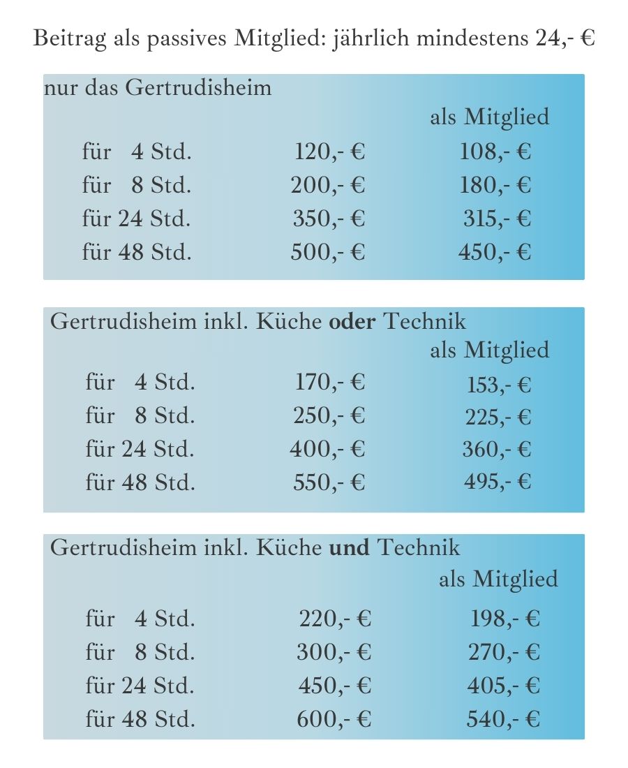 Verschaffen Sie sich einen Überblick über die Bedingungen und Konditionen zum anmieten des Gertrudisheims.